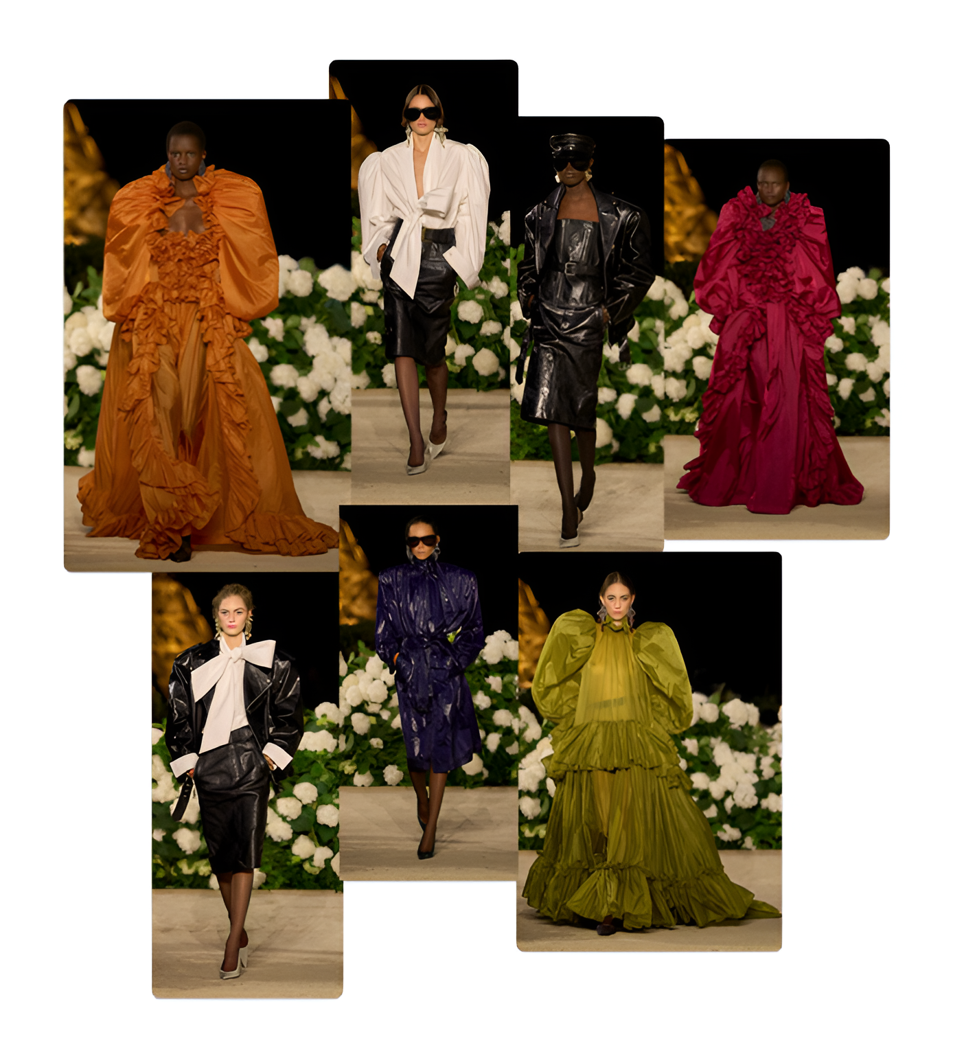 YSL: Rococo- Italo Disco; Robert Mapplethorpe; Poor Things (2023); opulent whimsigoth; yearning; Enya – Caribbean Blue; Lions, Love (…and Lies) directed by Agnes Varda; Blue Velvet directed by David Lynch; latex exhibitionism; Julia Fox’s ‘Down the Drain’ book chapters 6-8 (on her being a dominatrix).