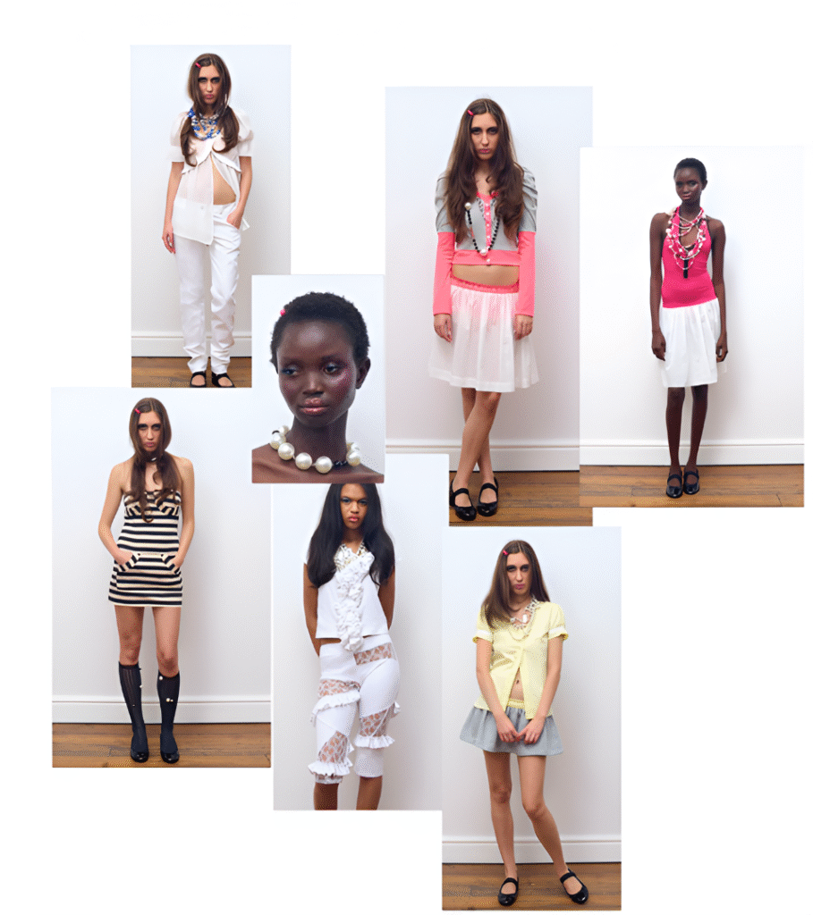 Predictions: (neon) pastels; tule; cardigans; chiffon; dolls; plastic and toys for jewellery; lace and negligees peeking out of ‘outdoor’ clothing; incorrectly wearing clothes; pointy heels